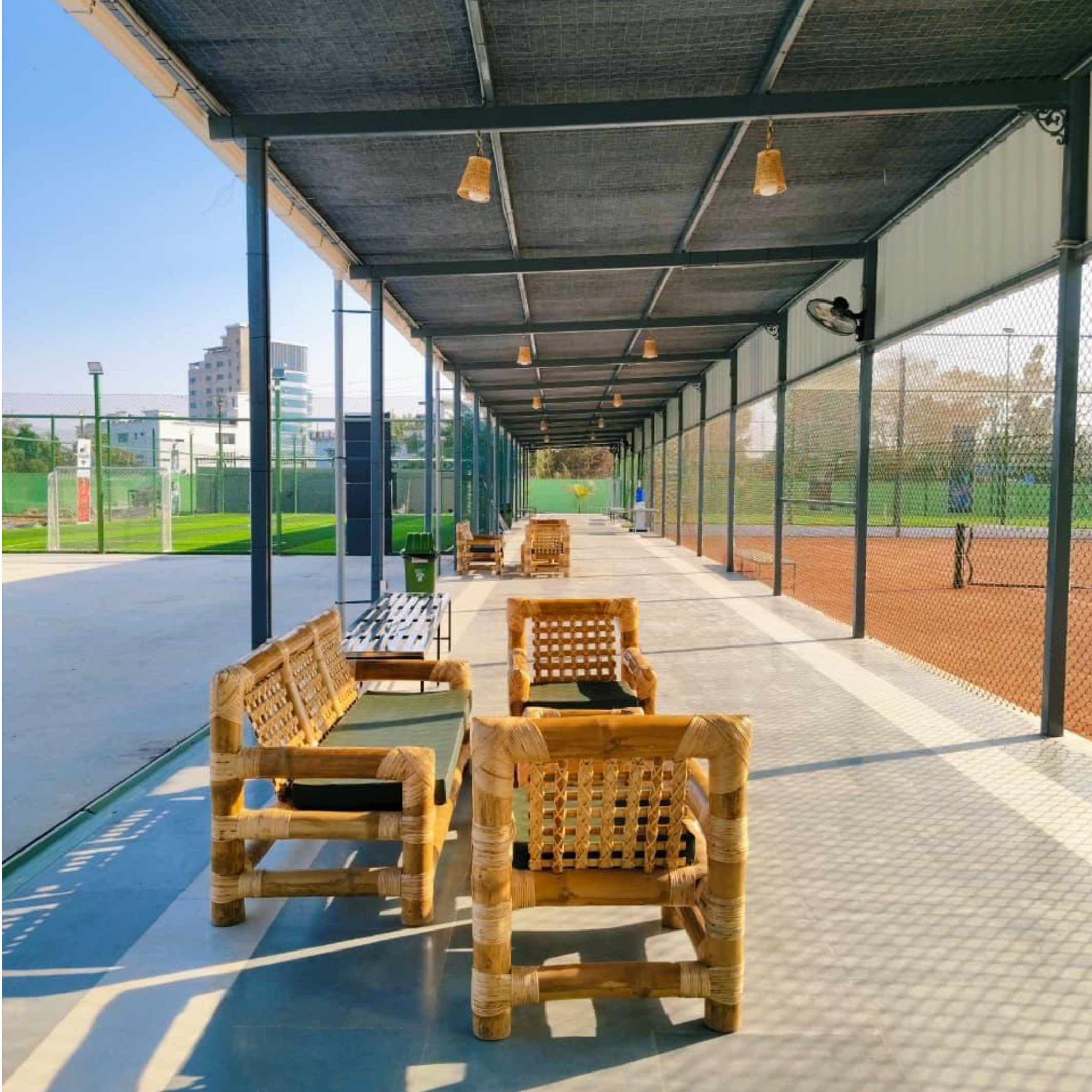 It has multipurpose turf for football, cricket , tennis , pickleball, badminton and includes many more facilities like gym and activity room with professional guidance . They are biggest in town so far. They have got it all!